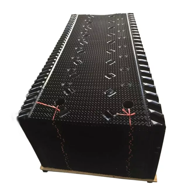 填充物由0.4毫米(1/64英寸)厚的PVC膜真空成型。 填充板配置在進(jìn)氣和出口部分都包含傾斜的凹槽,是高效的濕式平臺(tái)介質(zhì)。 蜂窩狀進(jìn)氣百葉窗部分使氣流阻力最小,并防止異物進(jìn)入。 填充板出口部分中的傾斜凹槽用作主要的除水器,以減少通過(guò)廢氣流逸出的液滴。 消除一次漂移或確保漂移損失小于循環(huán)水流量的0.005%。 具有連續(xù)三角形圖案的濕甲板介質(zhì)經(jīng)過(guò)專門設(shè)計(jì),可提供最大程度的空氣/水接觸和較低的阻力,從而確保高效的熱傳遞。